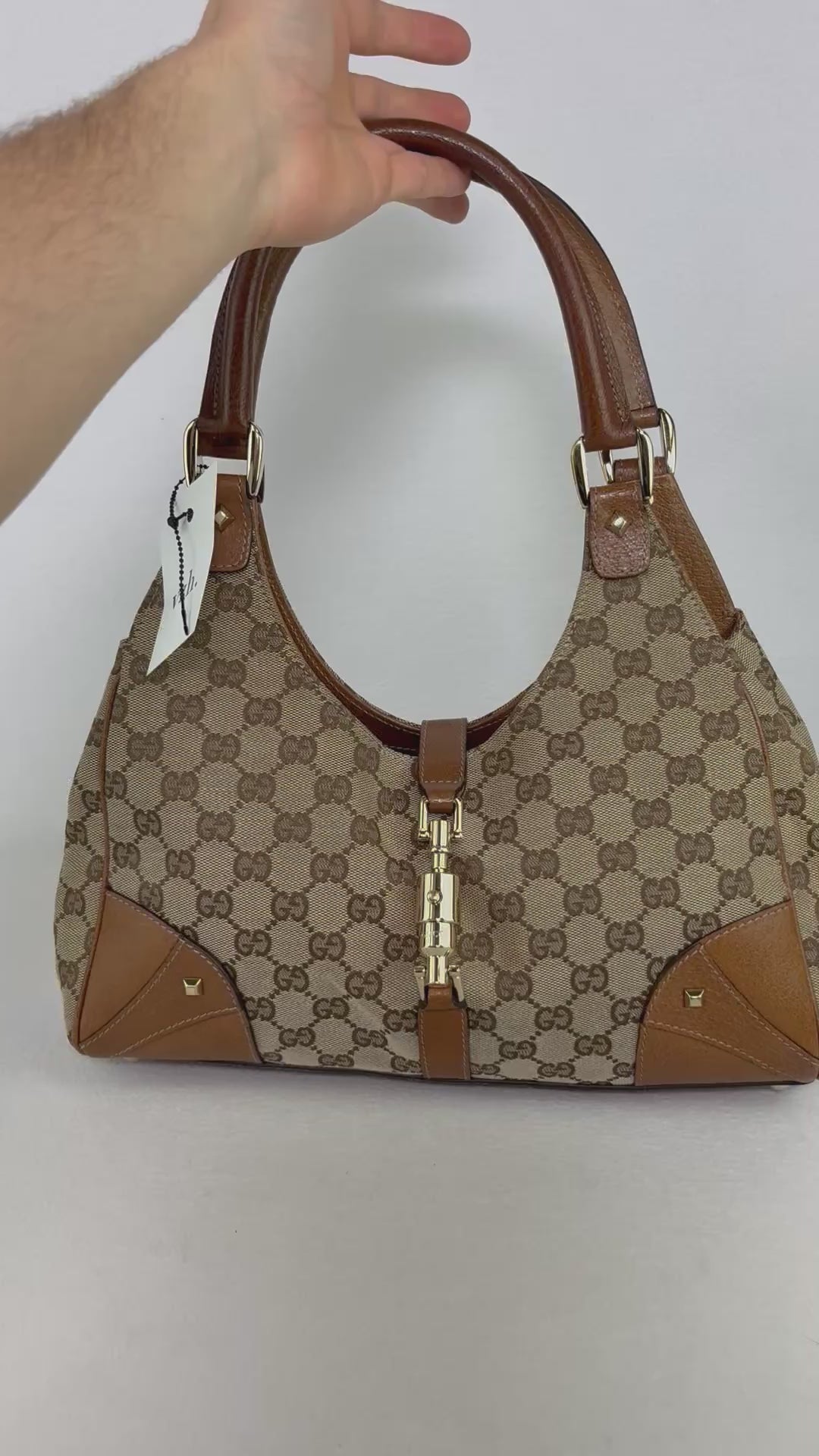 Die Gucci Jackie Handtasche ist eine ikonische Tasche des italienischen Luxusgüterunternehmens Gucci. Sie wurde erstmals 1961 entworfen und wurde schnell zum Lieblingsaccessoire von Jackie Kennedy Onassis, nach der sie benannt wurde. Die Jackie ist eine mittelgroße Tasche mit einer geschwungenen Form und einem goldenen Verschluss. Sie ist in verschiedenen Materialien erhältlich, darunter Leder, Canvas und Lackleder. Sie ist in einer Vielzahl von Farben erhältlich, darunter Schwarz, Braun, Beige und Rot.